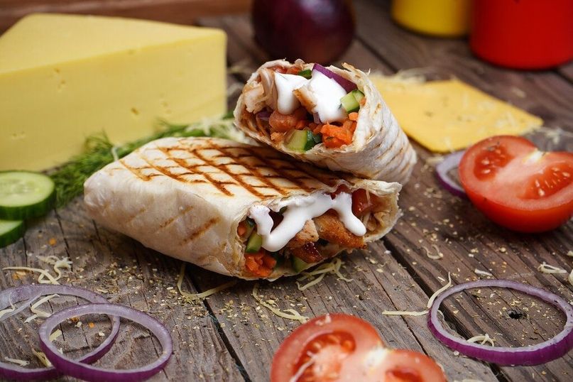 то не только вкусно, но и удобно. Она легко помещается в руке и ее можно взять с собой на работу или учебу. Мы используем только свежее рубленное куриное филе бедра, которое обжариваем до золотистой корочки на гриле. Затем добавляем свежие овощи и авторсие соусы.Все ингредиенты аккуратно заворачиваем в тортилью и подаем горячим.